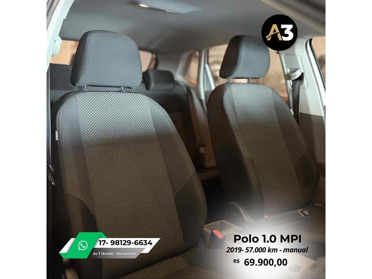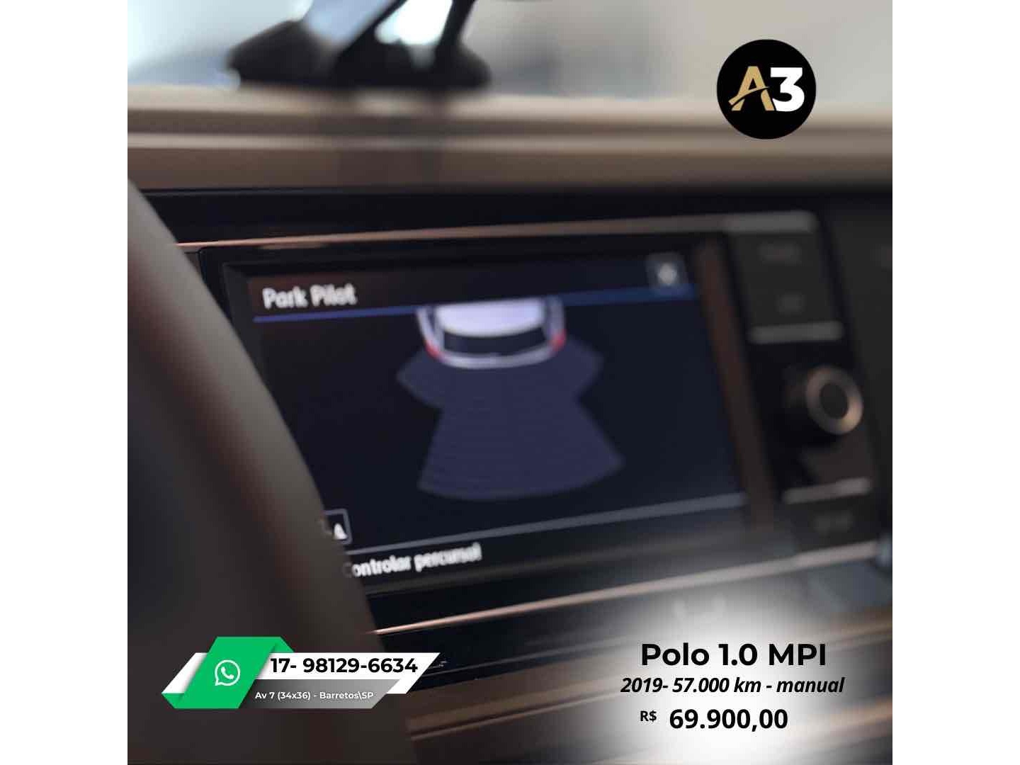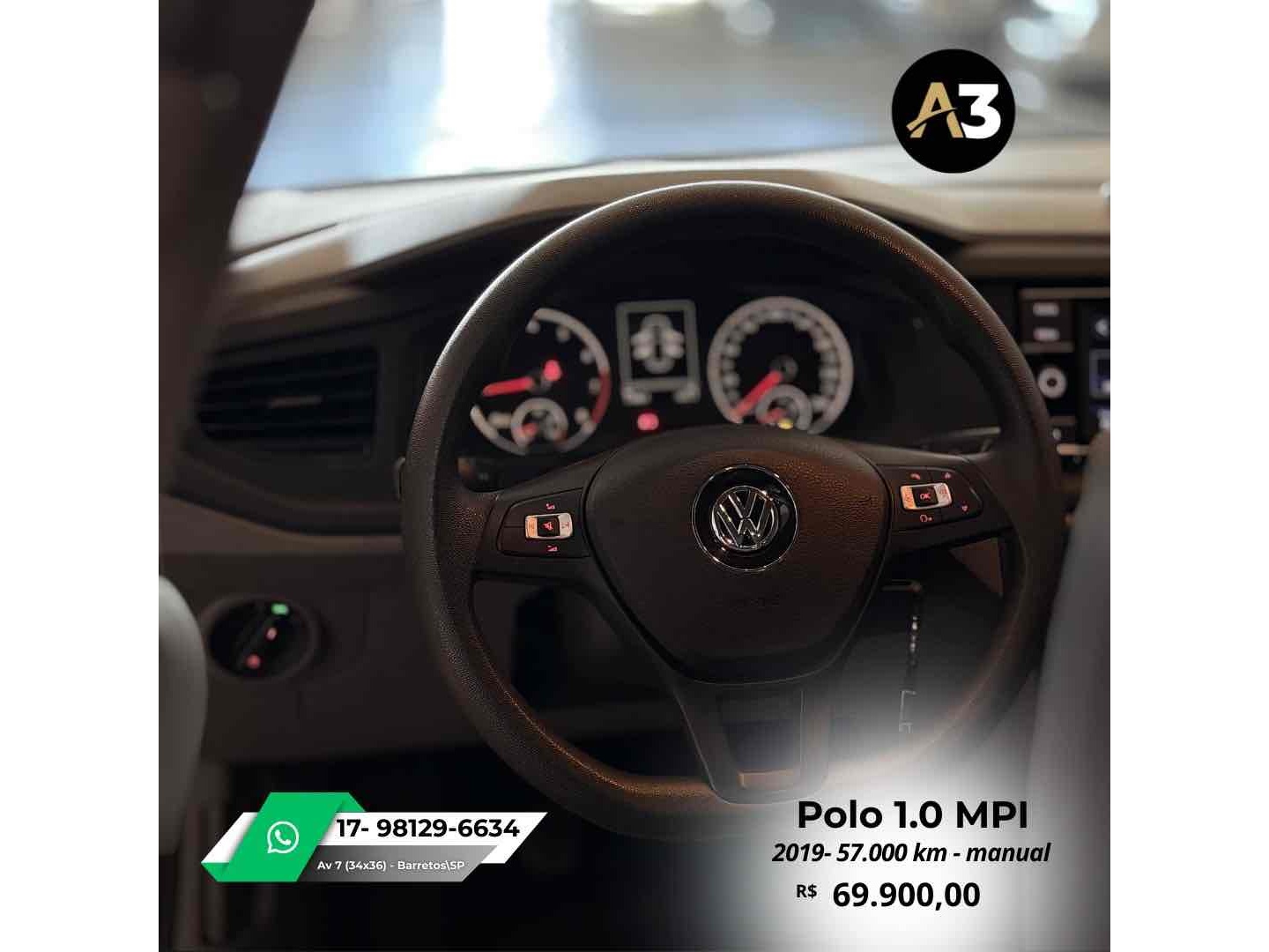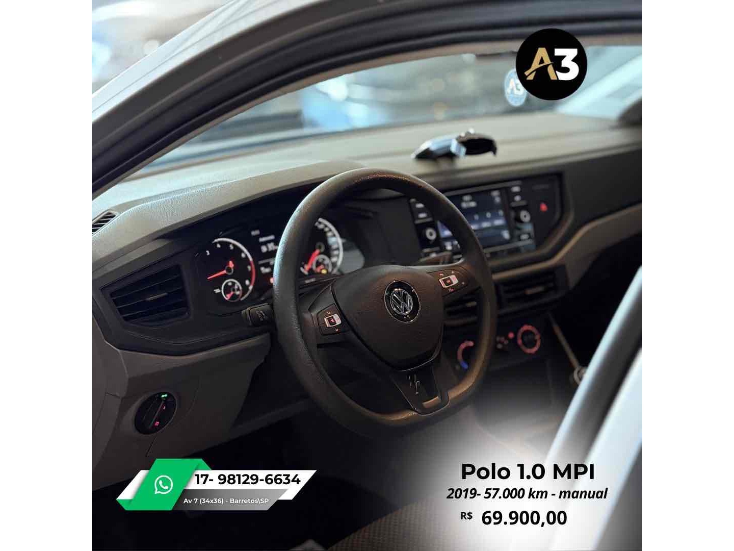 Polo 1.0 MPI MANUAL 2019*57.000 Km *Pneus Dunlop novos*Manual e chave reservaAr condicionadoDireção Elétrica AssistidaAjuste elétrico do retrovisorSetas no retrovisorVolante Multifuncional Mídia c/ CarPlayPark AssistBancos em tecidoRodas 16” R$69.000