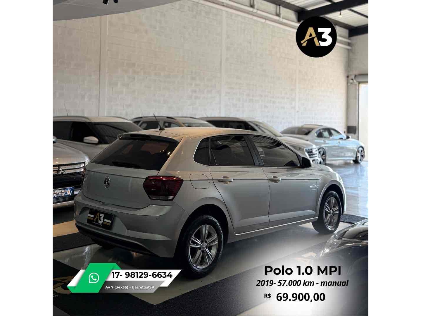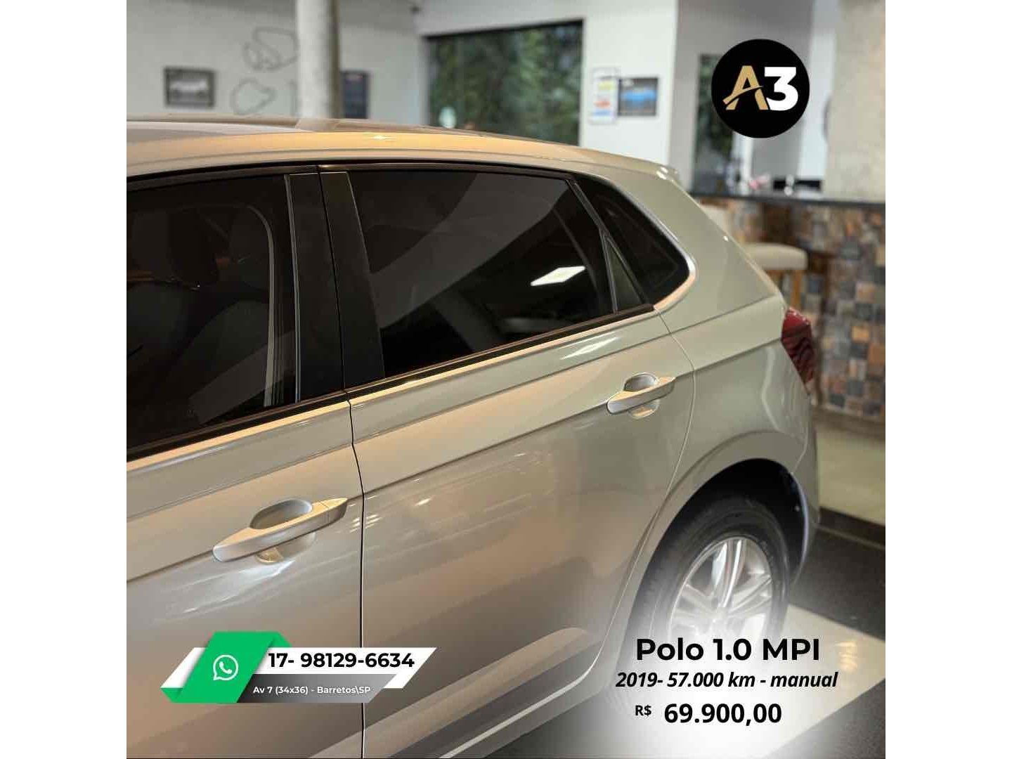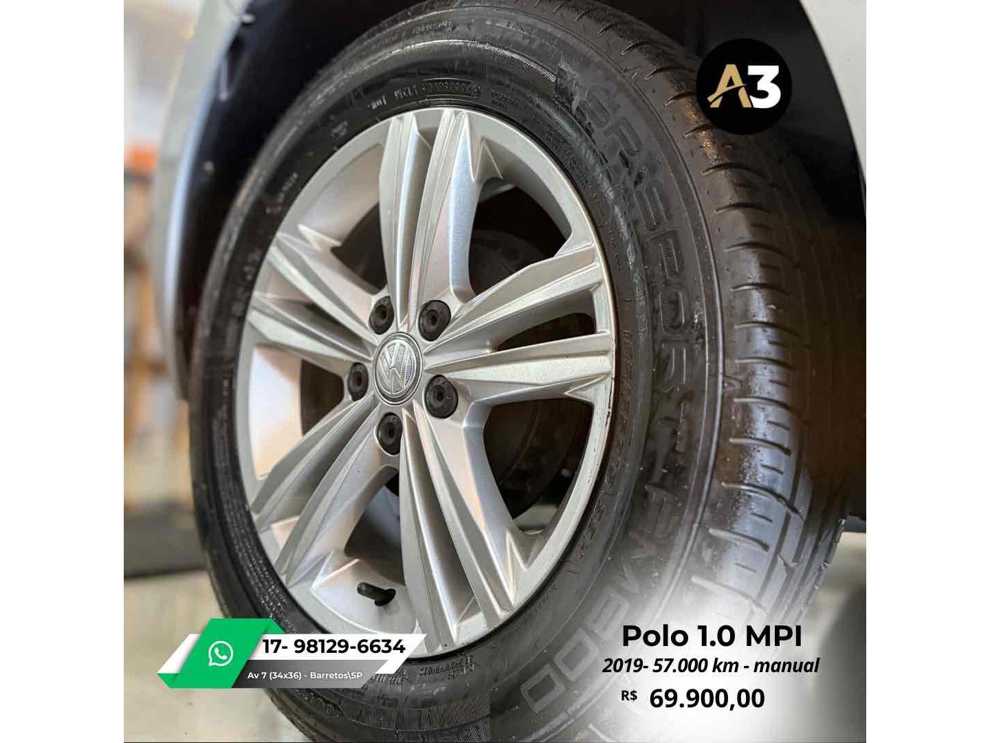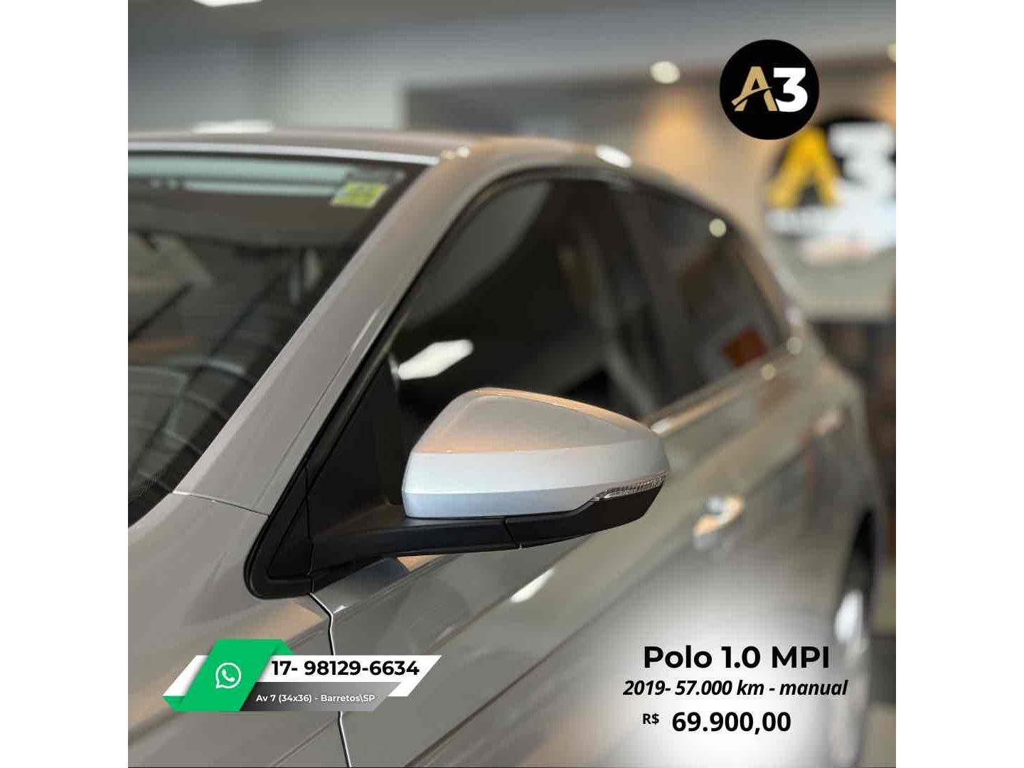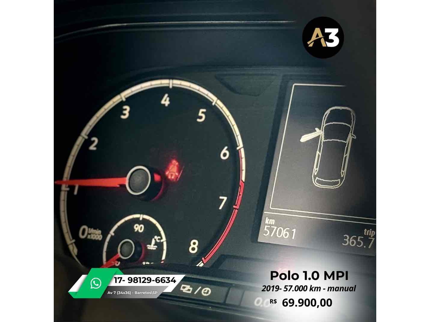 Polo 1.0 MPI MANUAL 2019*57.000 Km *Pneus Dunlop novos*Manual e chave reservaAr condicionadoDireção Elétrica AssistidaAjuste elétrico do retrovisorSetas no retrovisorVolante Multifuncional Mídia c/ CarPlayPark AssistBancos em tecidoRodas 16” R$69.000