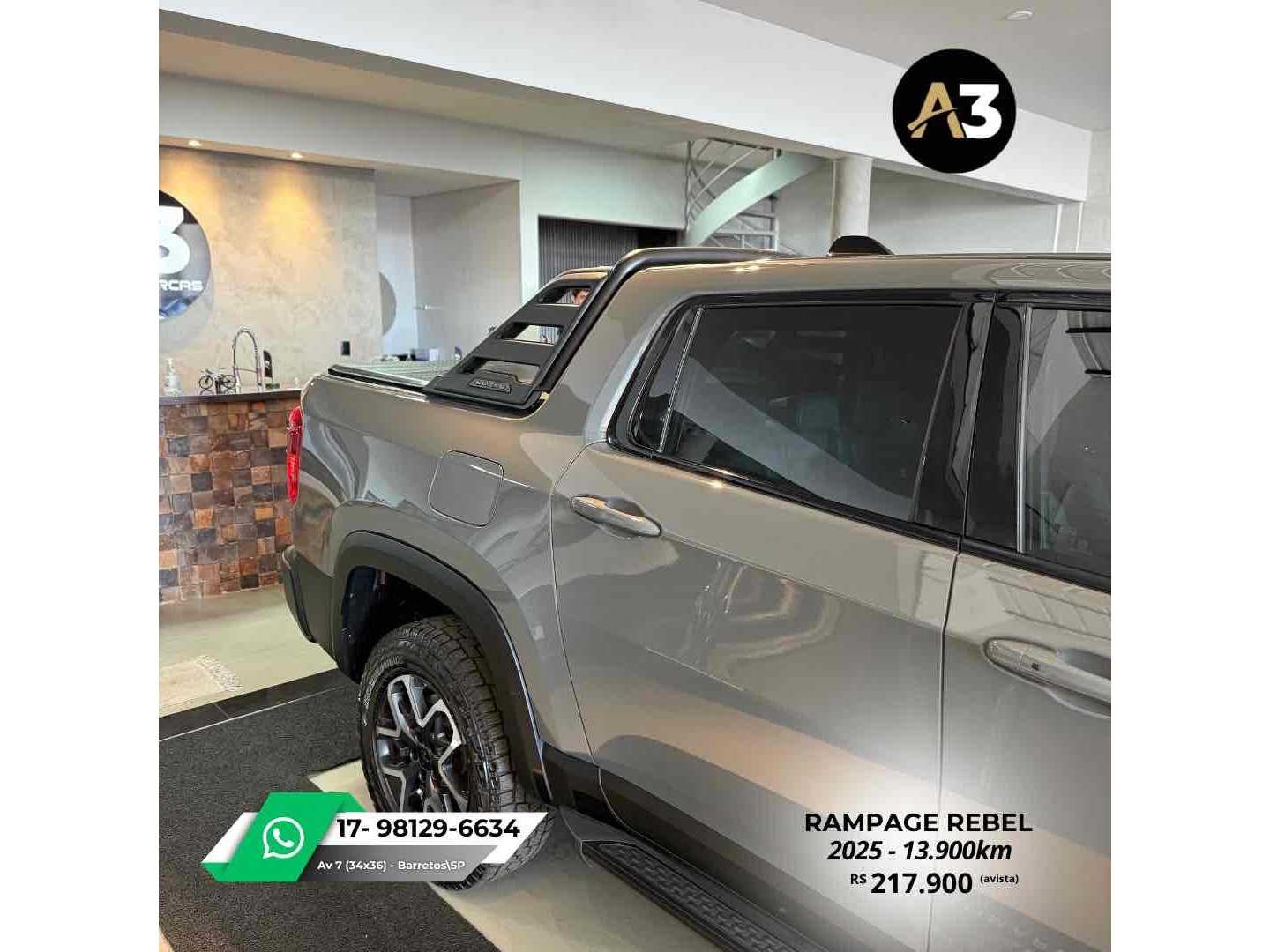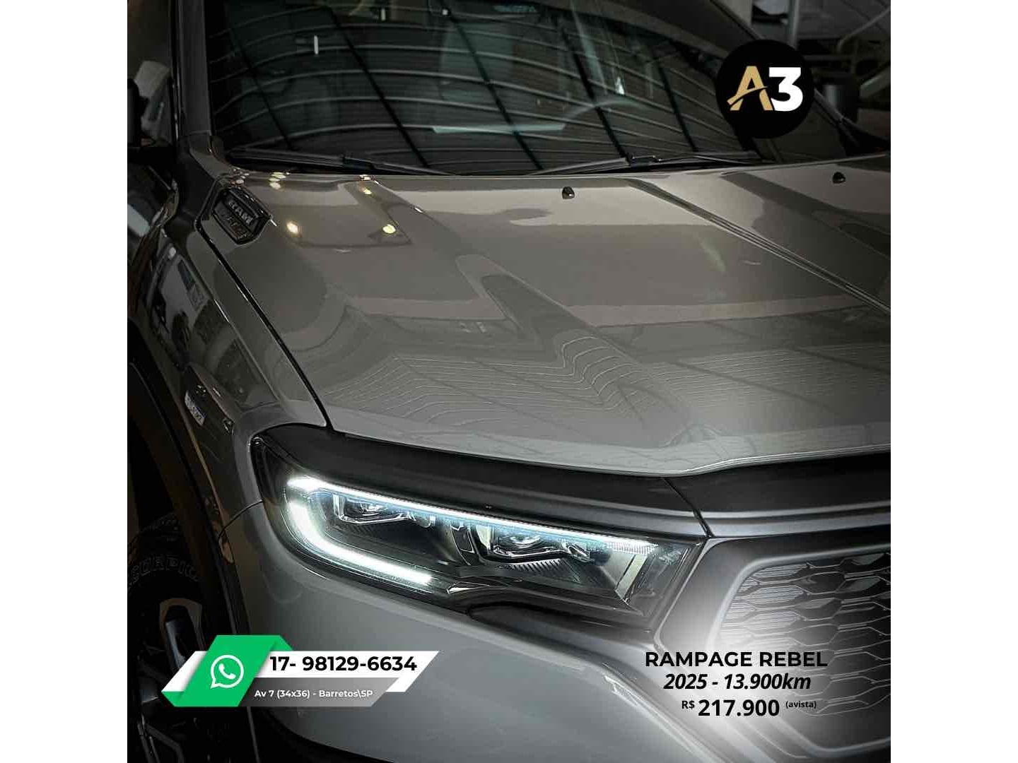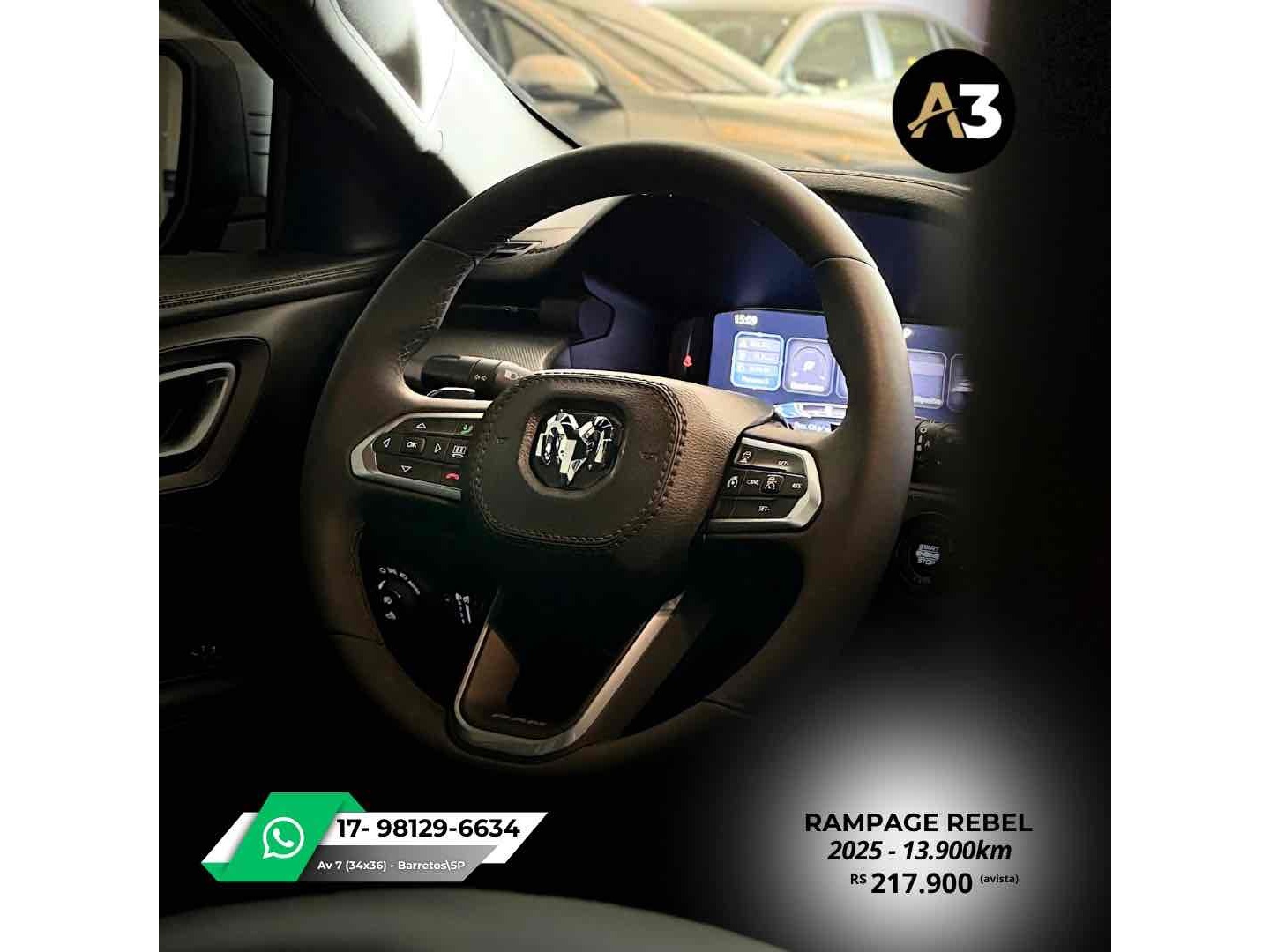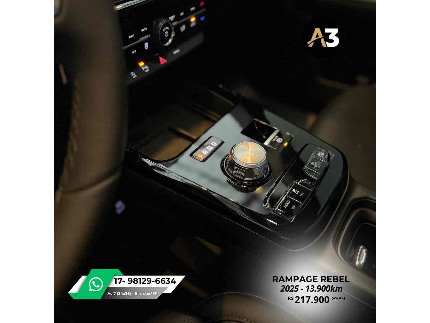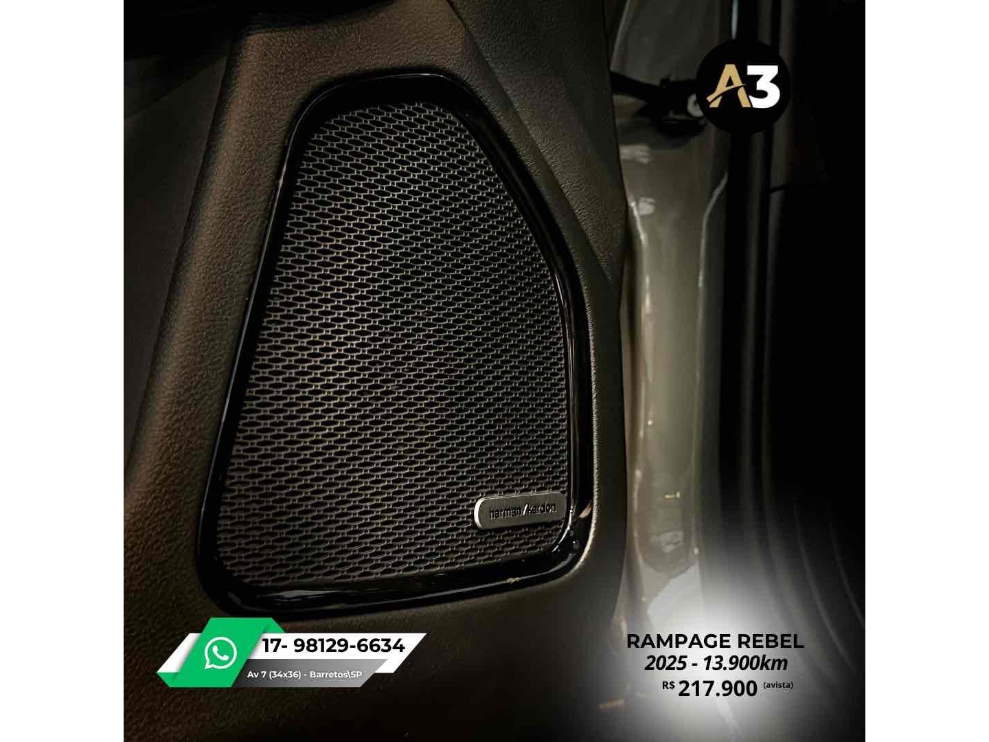 Rampage Rebel Hurr. 2025*Pacote Elite (6k)*Santo Antônio + Estribo (3,5k)*13.900km | Único dono*Cor exclusiva: Cinza Sting Motor 2.0 Turbo 272cv • AT9Som Premium Harman KardonBancos com ajuste elétricoLuz ambiente em ledIluminação Full LEDLuz direção dinâmica Câmera de Ré + Park AssistMultimídia 12.3" Uconnect c/ GPSAssistente partidas em Rampas Painel TFT 10.3" Detector de pedestres e ciclistas ACC Piloto automático adaptativoMonitor de ponto CegoAlerta em faixas | Alerta de colisão frontalPartida Remota na chaveFreio de mão elétricoKeyless | Chave presencial Tração 4x4 & ReduzidaRodas 17” Diamantadas217.900