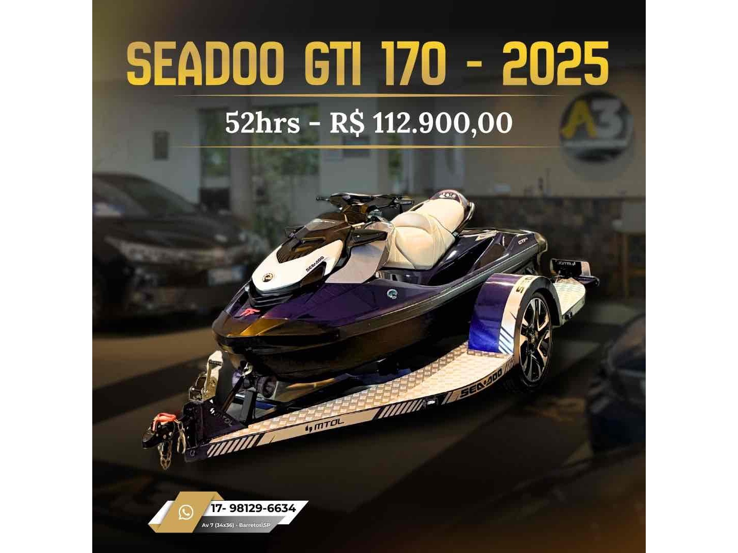 ??Seadoo GTI 170 2025??????????Roxo Midnight??Único dono??52hrs ??Revisões feitas na Css??Carreta Mtol + Capa ???????????R$ 112.900
