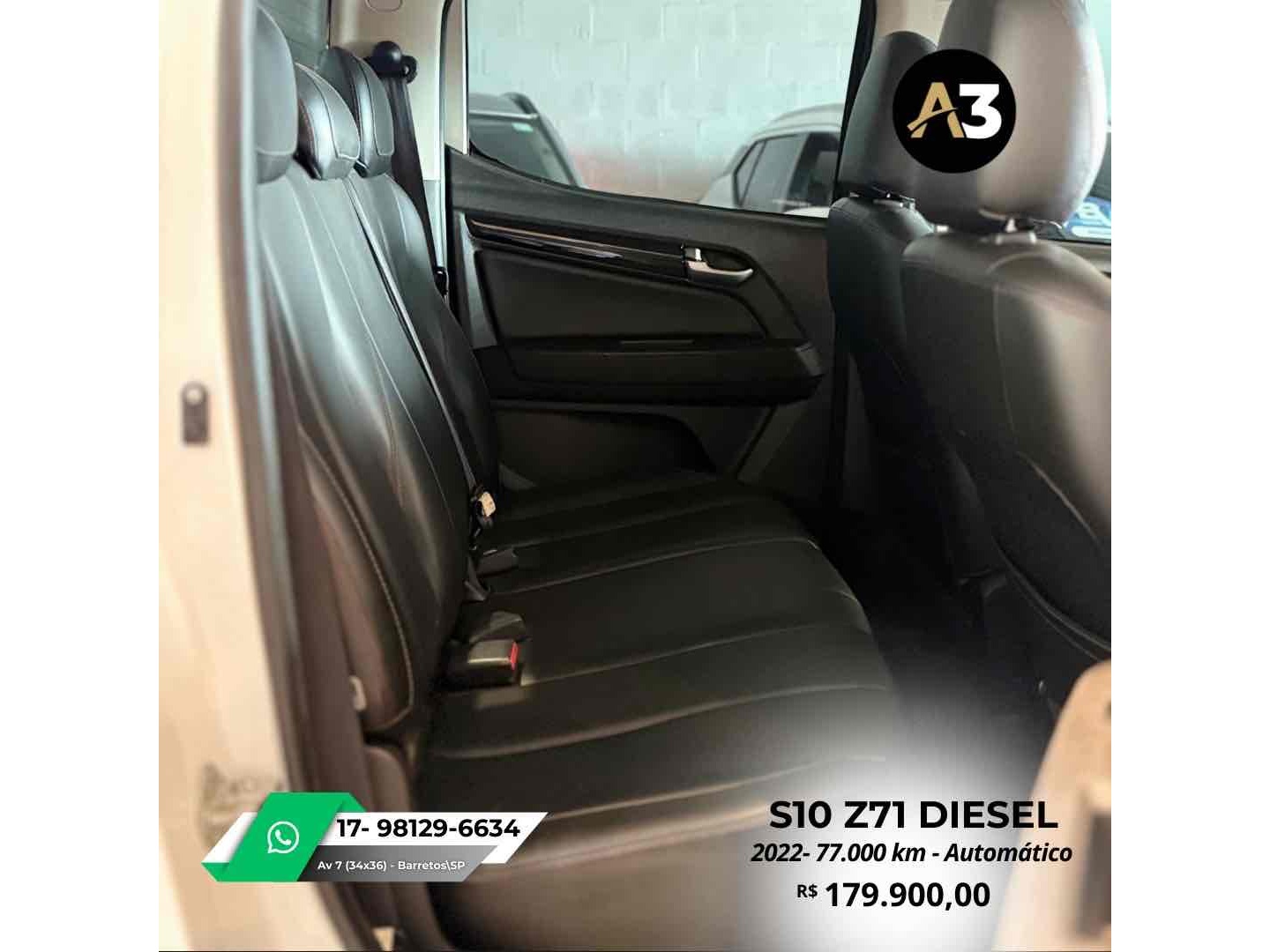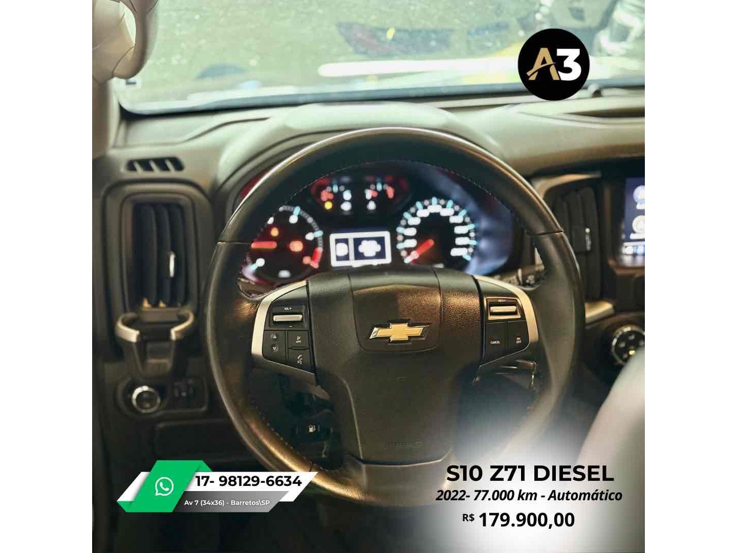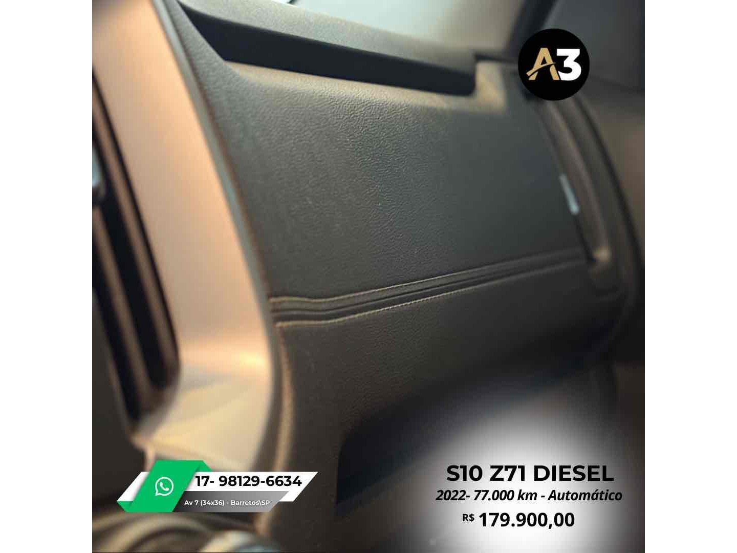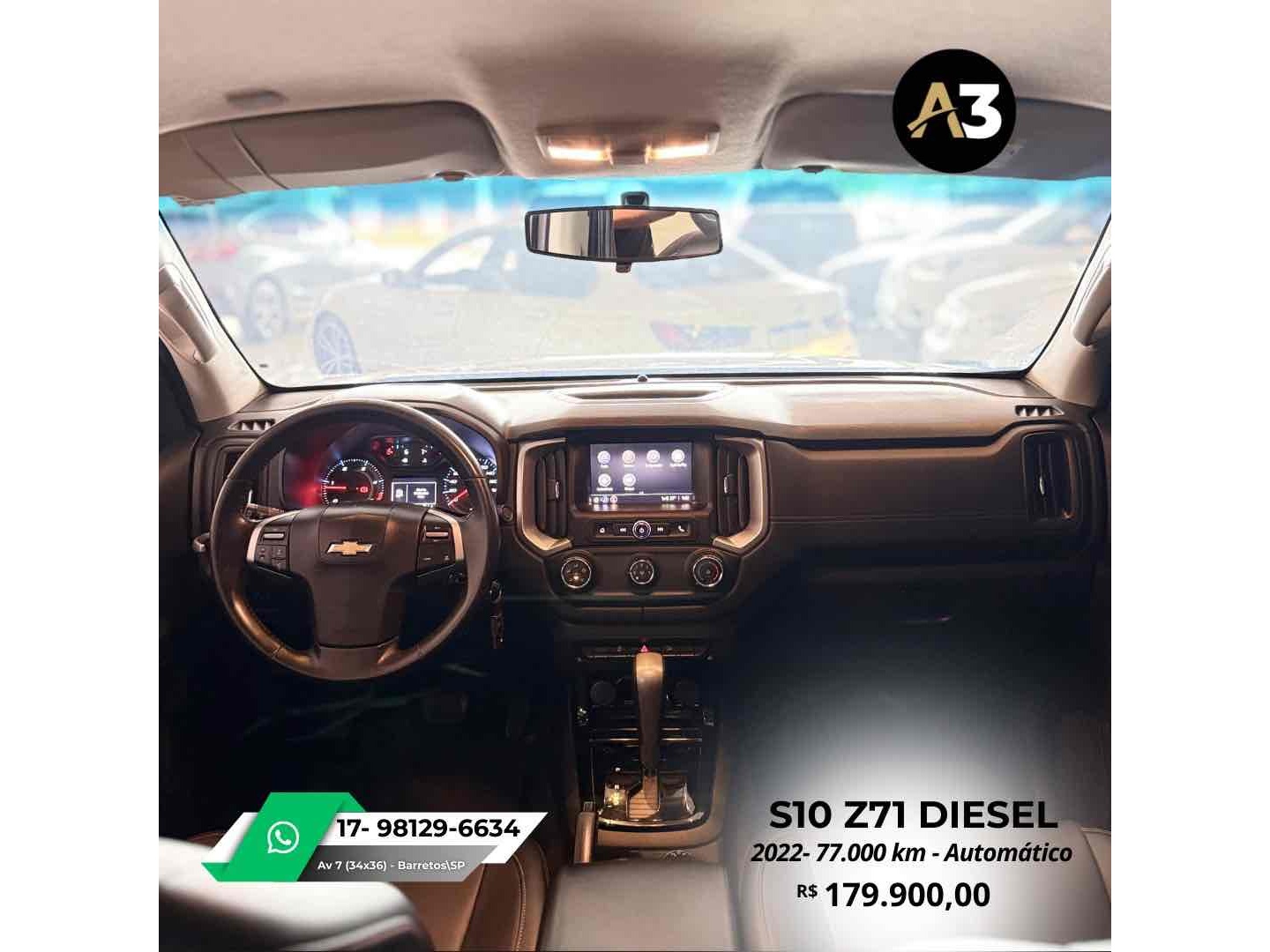 S10 Z71 2022 DIESEL*77.000 Km*Todas Revisões na Css*Pneus novos | Sem retoques*Estepe sem uso | Caçamba sem usoDireção elétrica assistidaAjuste elétrico do retrovisorBancos em couro Mídia C/ CarPlayAssistência em rampa Câmera de ré Sensor de estacionamentoTração 4x4DRL Led Controle de tração e estabilidadeMotor 2.8 Turbo Diesel ~ 200cv R$179.900