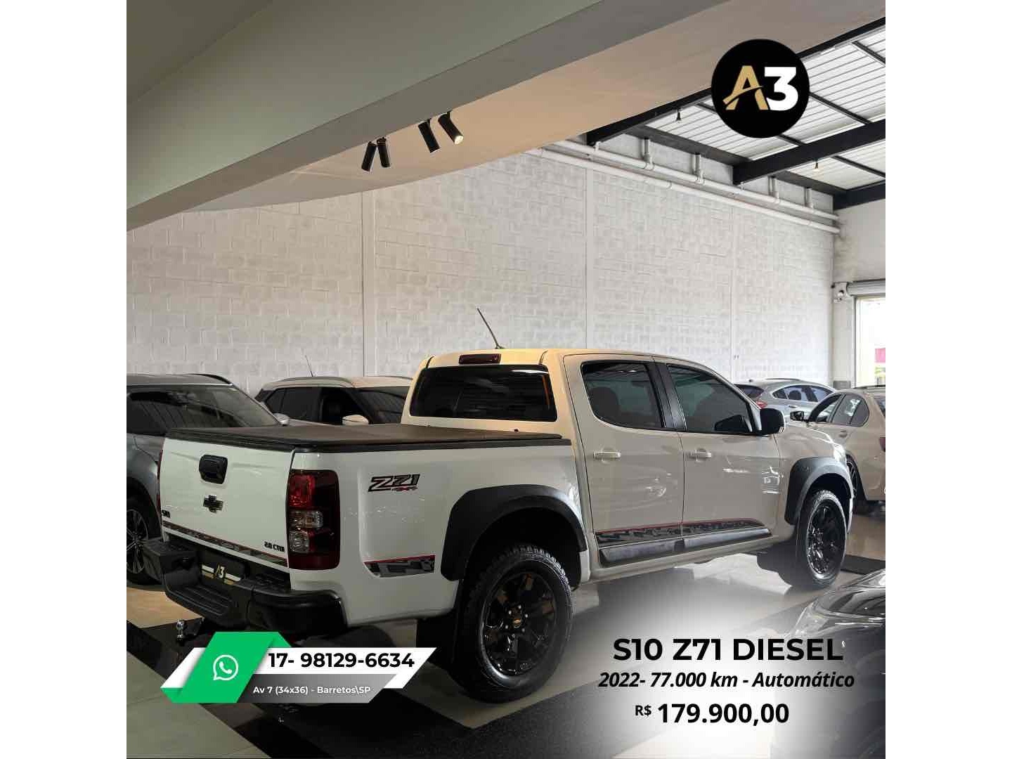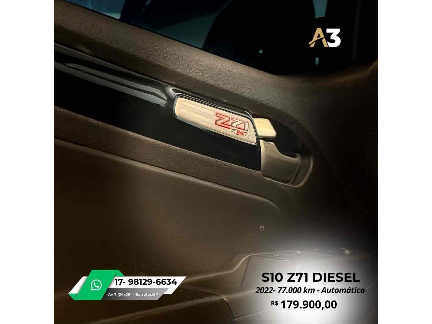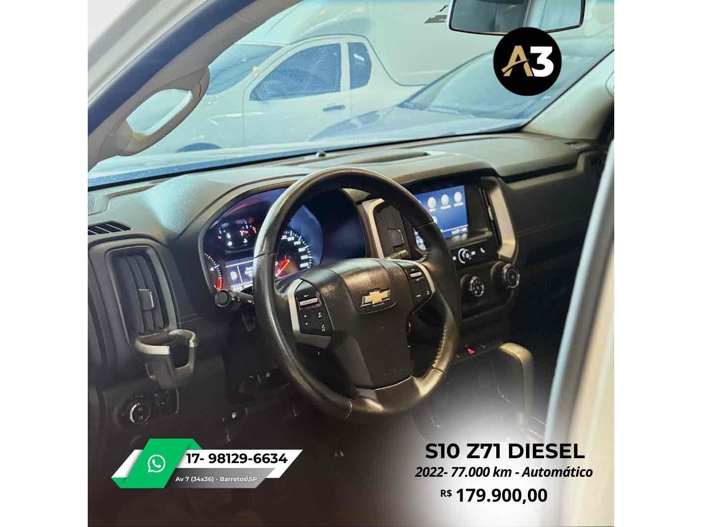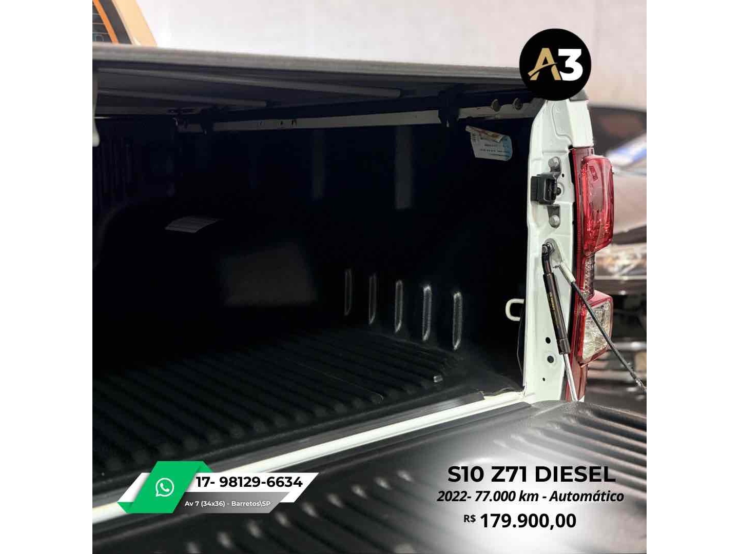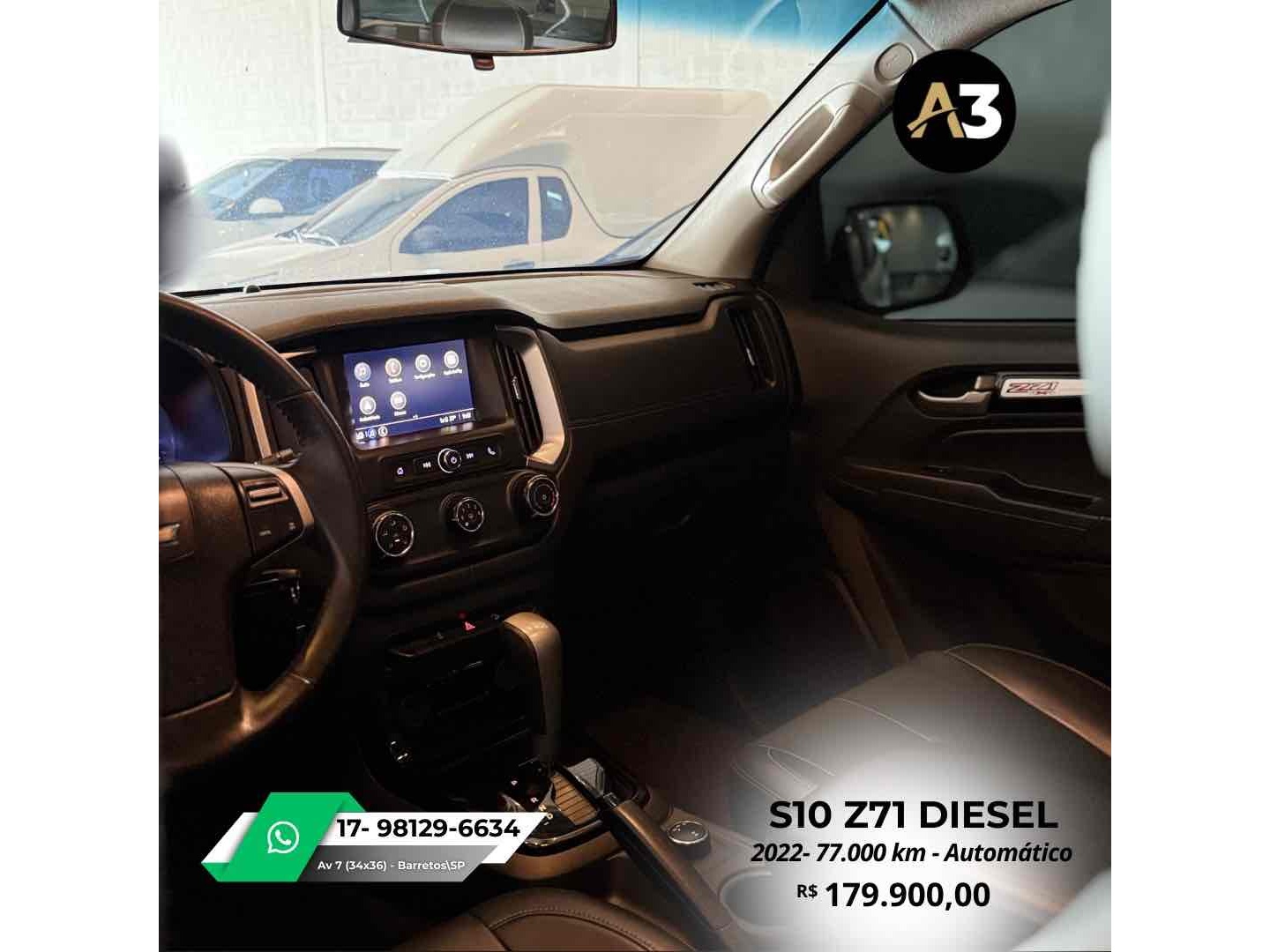 S10 Z71 2022 DIESEL*77.000 Km*Todas Revisões na Css*Pneus novos | Sem retoques*Estepe sem uso | Caçamba sem usoDireção elétrica assistidaAjuste elétrico do retrovisorBancos em couro Mídia C/ CarPlayAssistência em rampa Câmera de ré Sensor de estacionamentoTração 4x4DRL Led Controle de tração e estabilidadeMotor 2.8 Turbo Diesel ~ 200cv R$179.900
