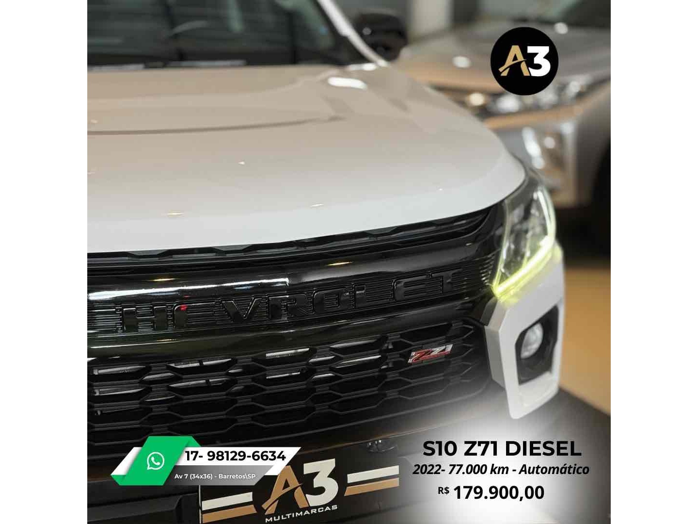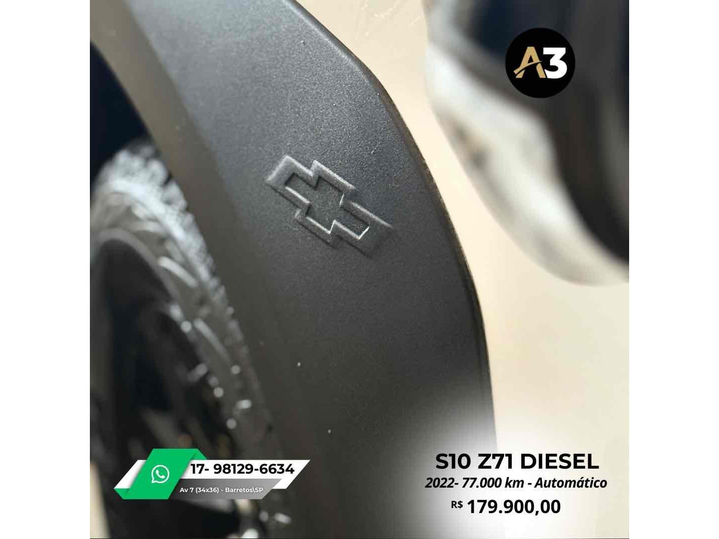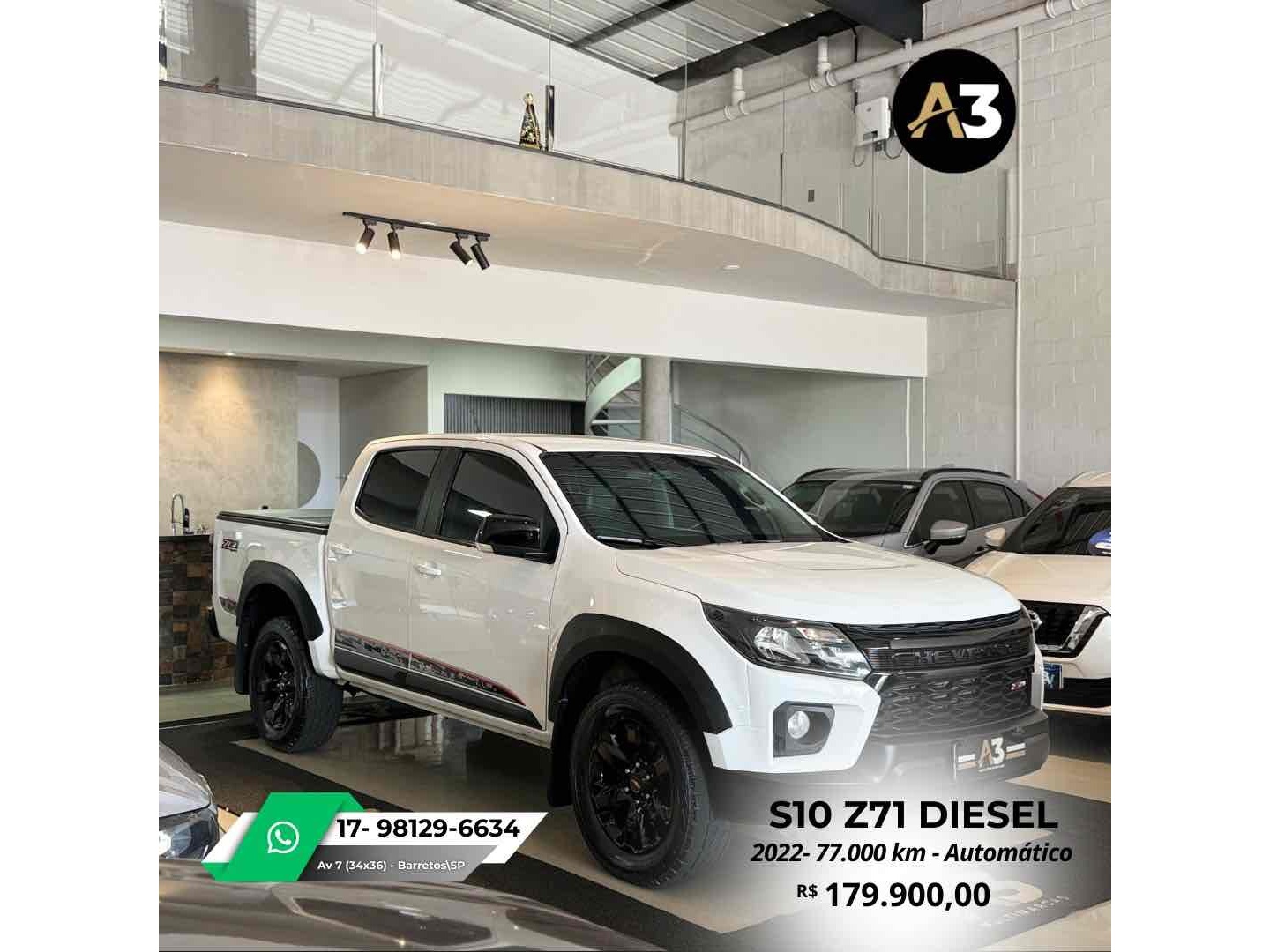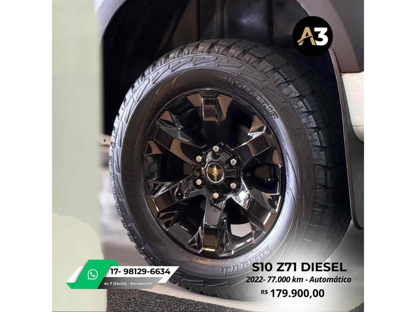 S10 Z71 2022 DIESEL*77.000 Km*Todas Revisões na Css*Pneus novos | Sem retoques*Estepe sem uso | Caçamba sem usoDireção elétrica assistidaAjuste elétrico do retrovisorBancos em couro Mídia C/ CarPlayAssistência em rampa Câmera de ré Sensor de estacionamentoTração 4x4DRL Led Controle de tração e estabilidadeMotor 2.8 Turbo Diesel ~ 200cv R$179.900