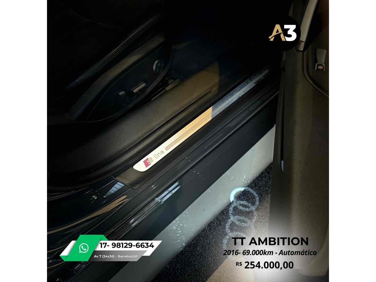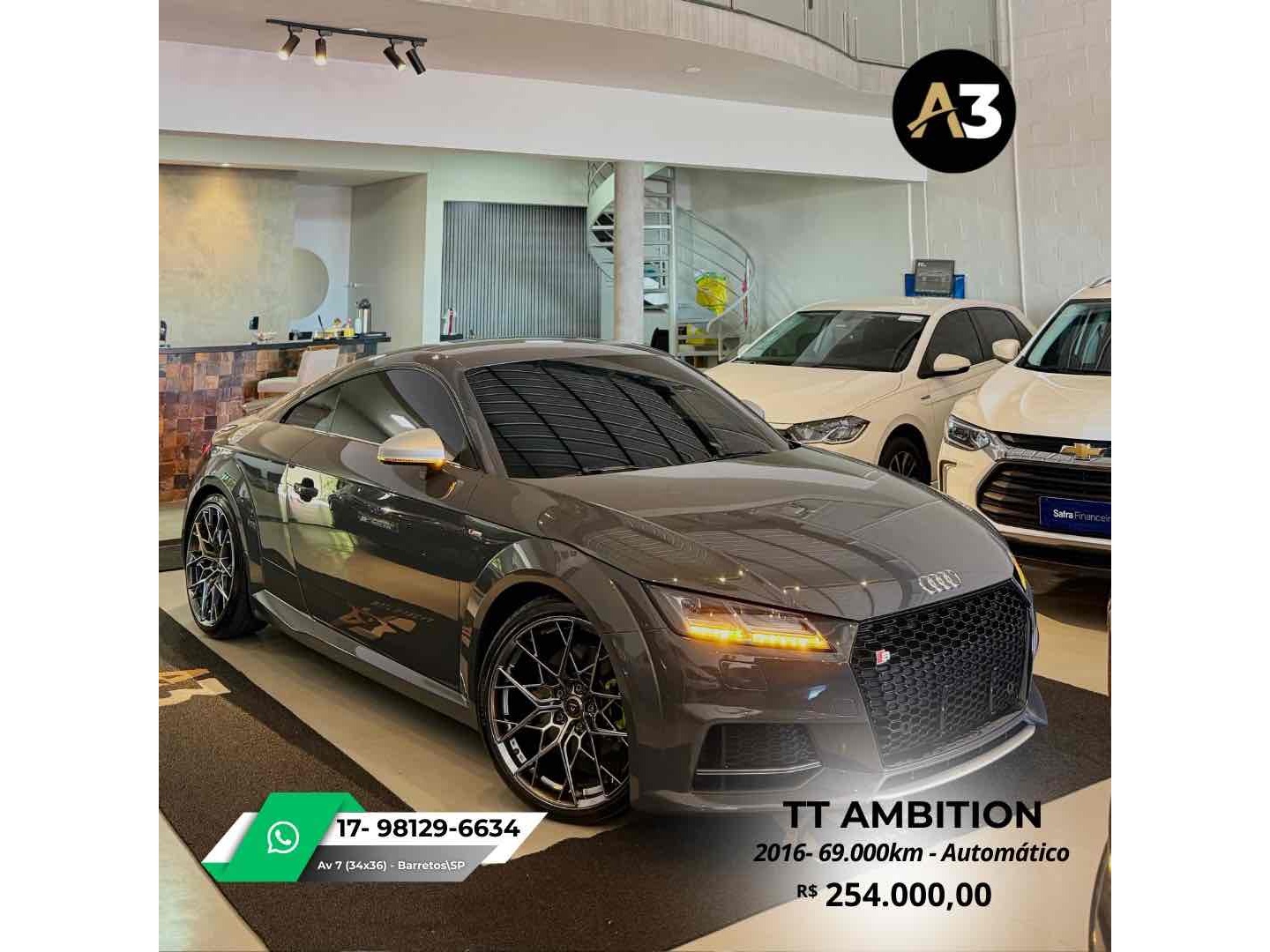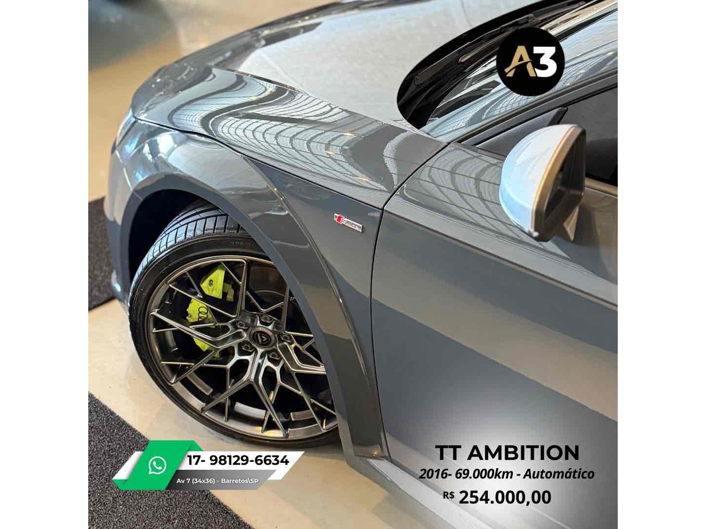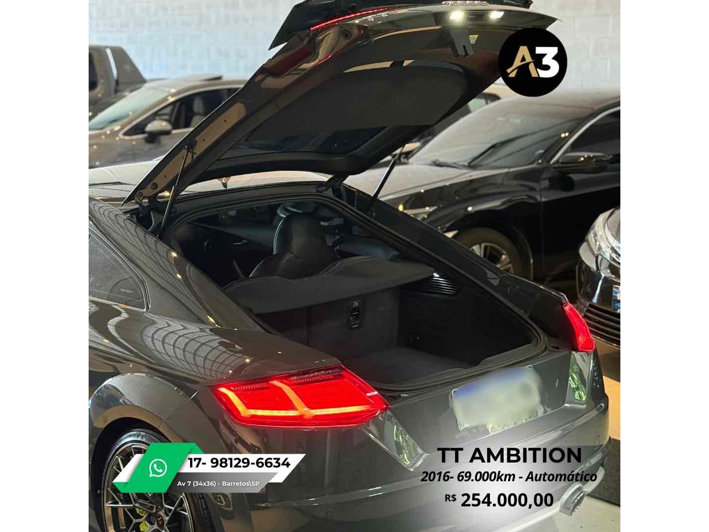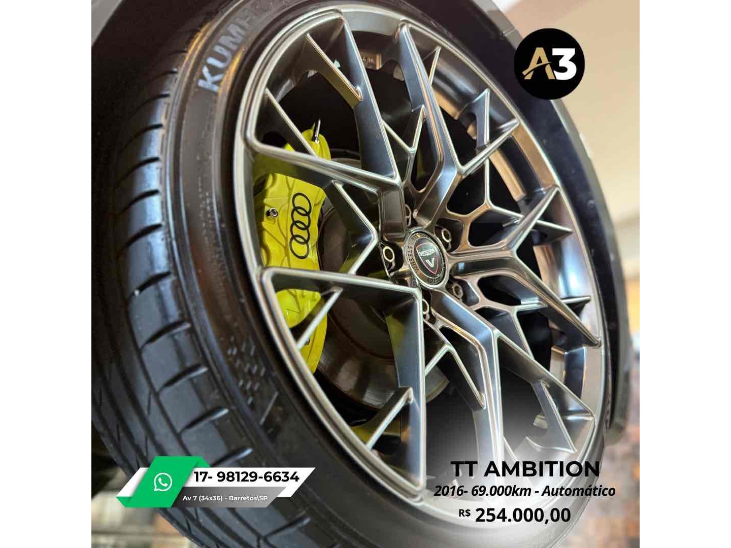 TT Ambition S-Line 2.0 TFSI 2016*Cor Rarissima: Moonson Grey (Nardo Perolizado)*Cautelar Dekra 100%*Carro muito novo + 10k em opcionaisMotor 2.0 4Cil Turbo - 230cvBodykit S-Line de FábricaDrive Select - Modos de ConduçãoAr Condicionado DigitalRodas Aro 19" AcetinadasAerofólio Retrátil (Automático ou Botão)Volante Multifuncional Base RetaPaddle ShiftPainel TFT 12.3"Bluetooth & GPSSensor de Estacionamento TraseiroBancos Esportivos em Alcântara & CouroFreio de Mão EletrônicoFull Led254.000