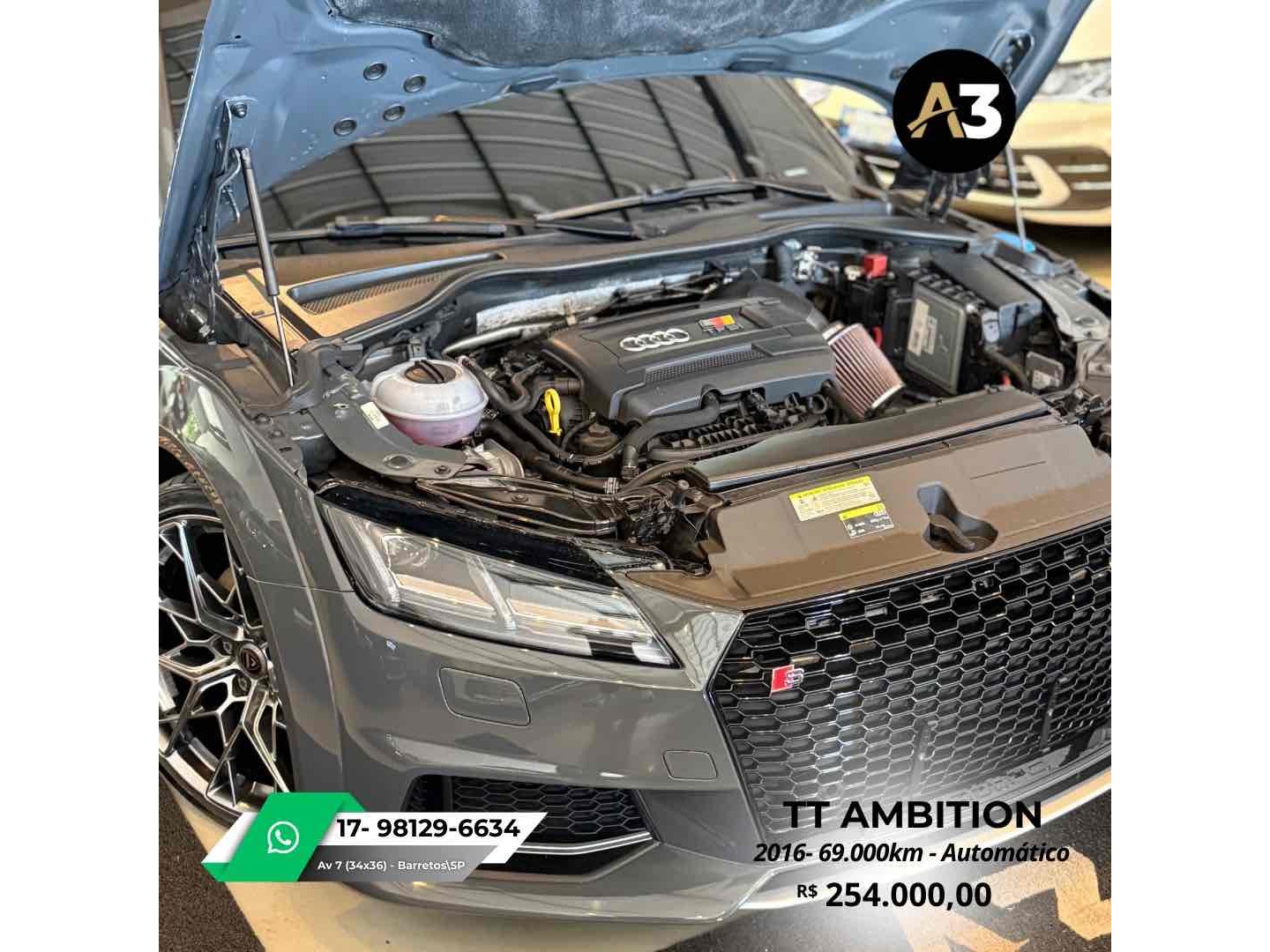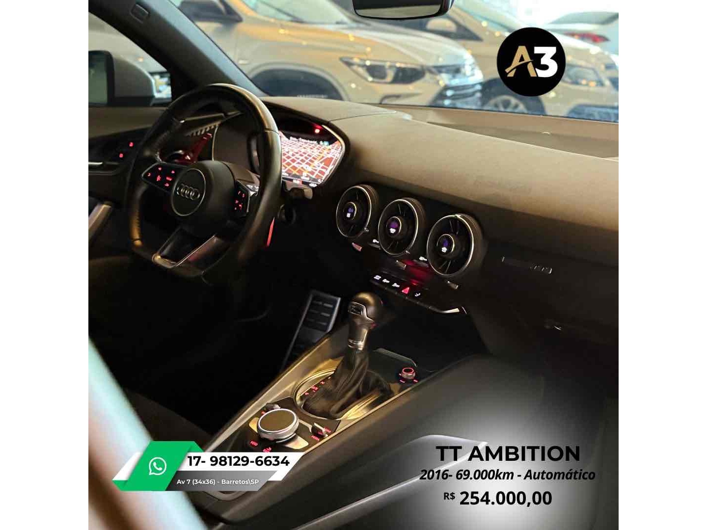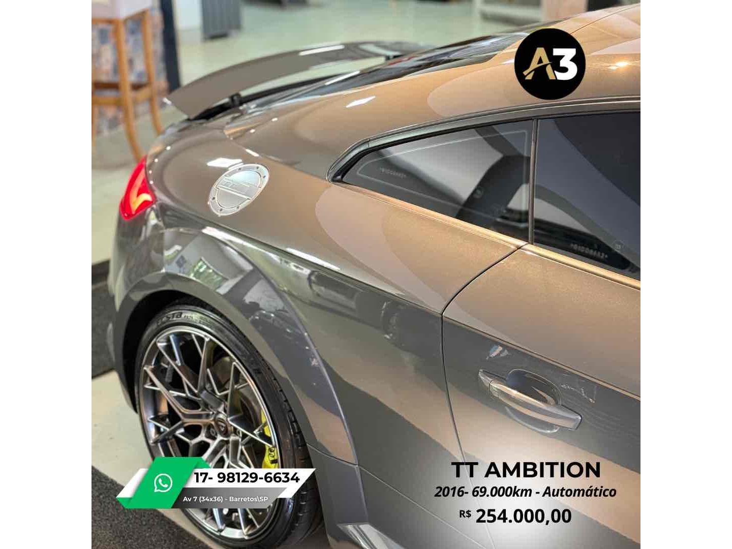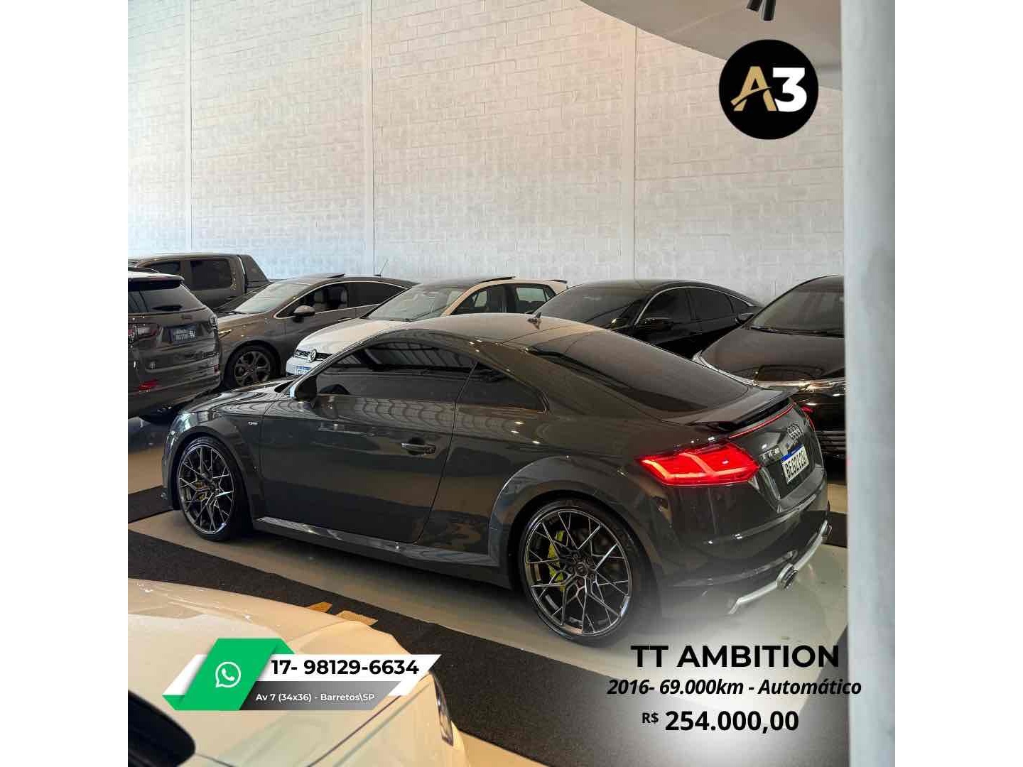 TT Ambition S-Line 2.0 TFSI 2016*Cor Rarissima: Moonson Grey (Nardo Perolizado)*Cautelar Dekra 100%*Carro muito novo + 10k em opcionaisMotor 2.0 4Cil Turbo - 230cvBodykit S-Line de FábricaDrive Select - Modos de ConduçãoAr Condicionado DigitalRodas Aro 19" AcetinadasAerofólio Retrátil (Automático ou Botão)Volante Multifuncional Base RetaPaddle ShiftPainel TFT 12.3"Bluetooth & GPSSensor de Estacionamento TraseiroBancos Esportivos em Alcântara & CouroFreio de Mão EletrônicoFull Led254.000