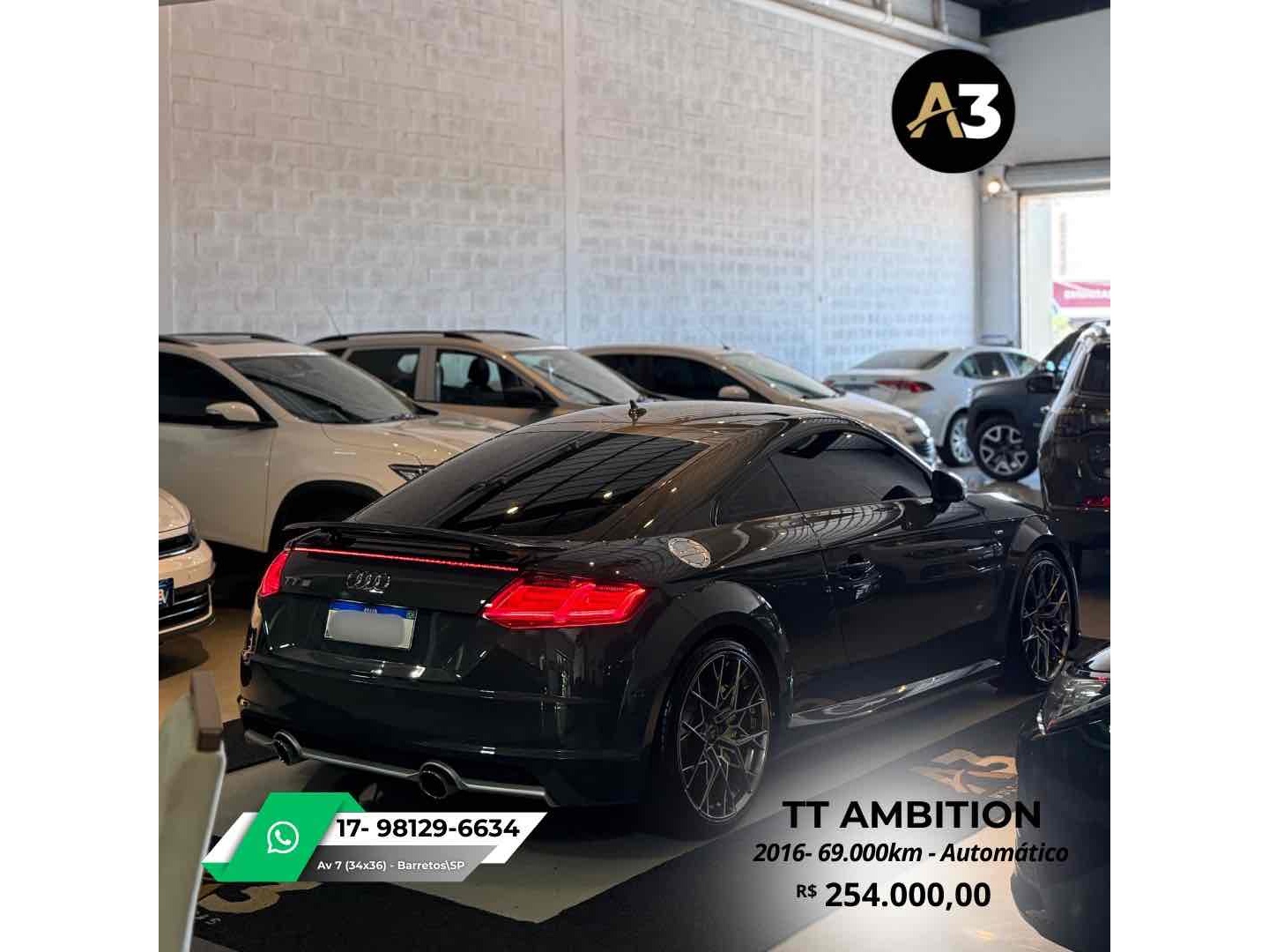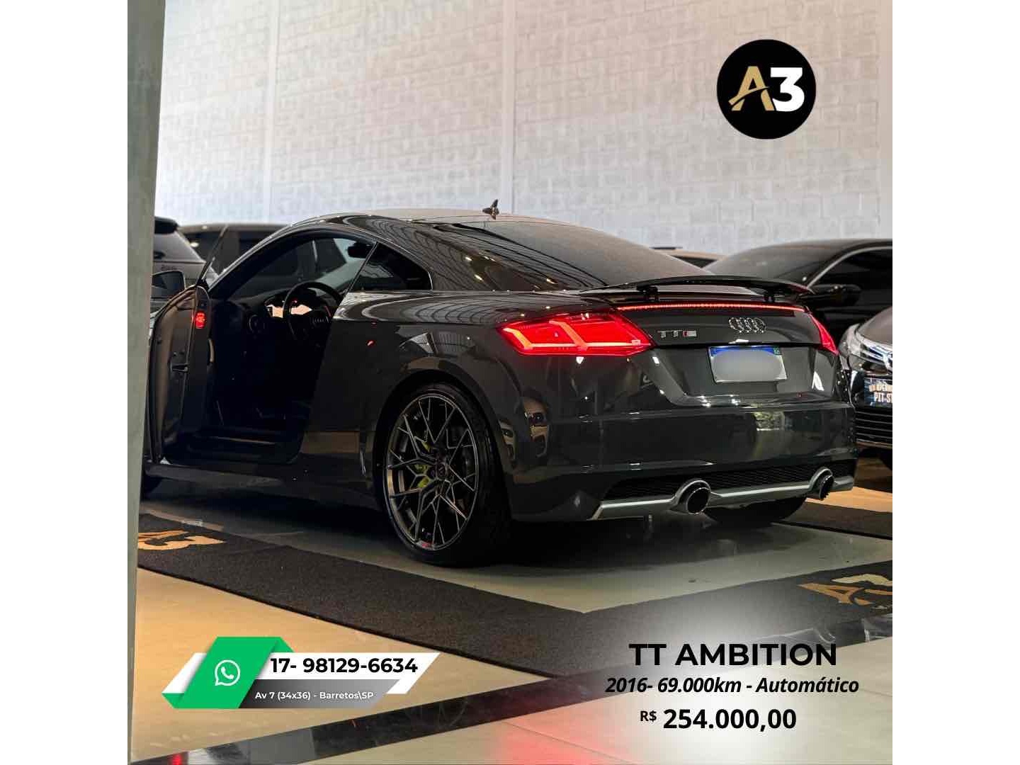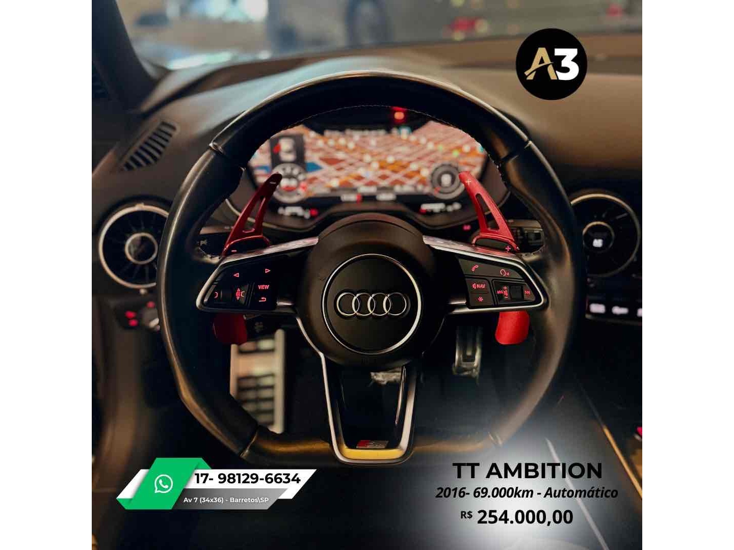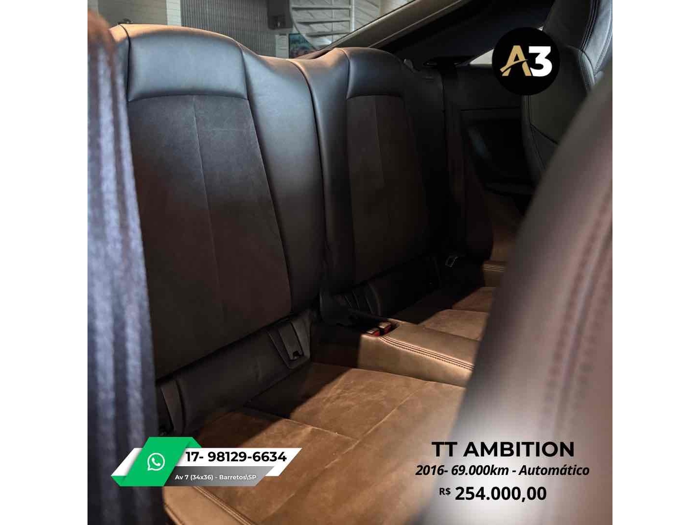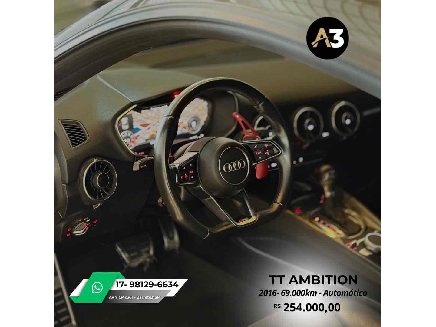 TT Ambition S-Line 2.0 TFSI 2016*Cor Rarissima: Moonson Grey (Nardo Perolizado)*Cautelar Dekra 100%*Carro muito novo + 10k em opcionaisMotor 2.0 4Cil Turbo - 230cvBodykit S-Line de FábricaDrive Select - Modos de ConduçãoAr Condicionado DigitalRodas Aro 19" AcetinadasAerofólio Retrátil (Automático ou Botão)Volante Multifuncional Base RetaPaddle ShiftPainel TFT 12.3"Bluetooth & GPSSensor de Estacionamento TraseiroBancos Esportivos em Alcântara & CouroFreio de Mão EletrônicoFull Led254.000